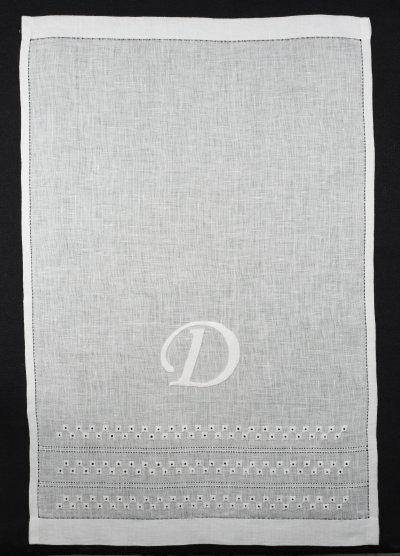 eyelets add unexpected charm to this handmade towel while a large padded satin stitch monogram
